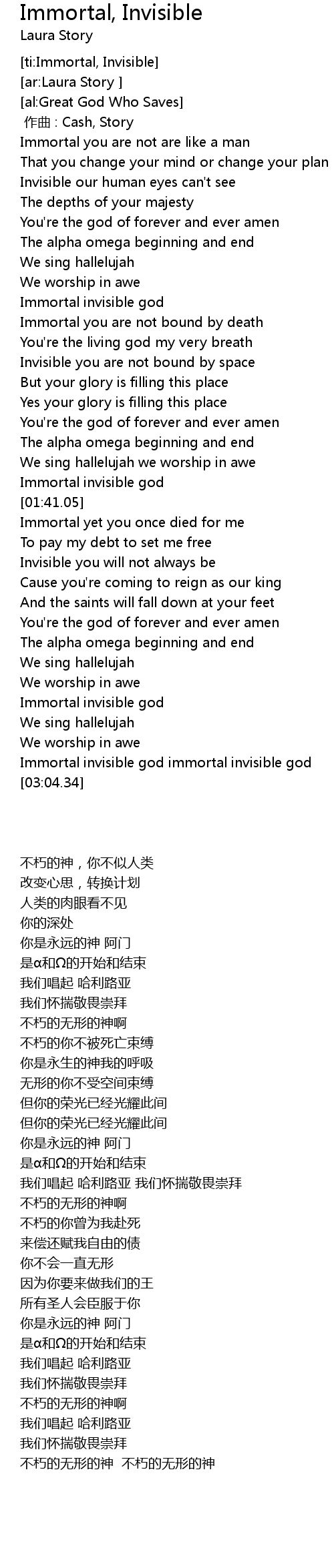 , Bug Fixed ***** Medley Immortal Invisible God Only Wise and Great are You Lord Immortal, invisible, God only wise, In light . LYRICS", By Laura Story Now unto the King eternal, immortal, invisible, the only wise God, be honour and glory for ever and ever. Amen.. If you're searching for Immortal Invisible Lyrics topic, Immortal, Invisible | Baptist Music Virtual Ministry | Ensemble, "IMMORTAL, INVISIBLE" Performed by Baptist Music Virtual Ministry Under the Ministry of La Loma Baptist Church Words and . you have visit the ideal blog. Our web always gives you hints for seeing the highest quality images content, please kindly hunt and locate more enlightening articles and pix that fit your interests.
